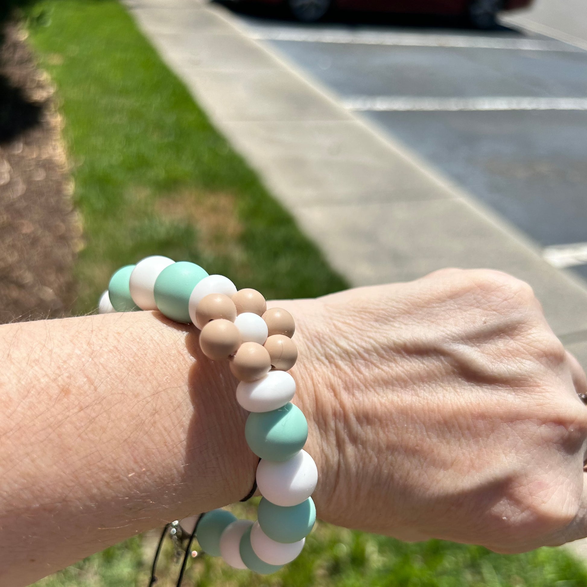 Add cute charm to your accessories with our daisy wristlet. Each of our wristlets are sturdy and made with food safe silicone beads