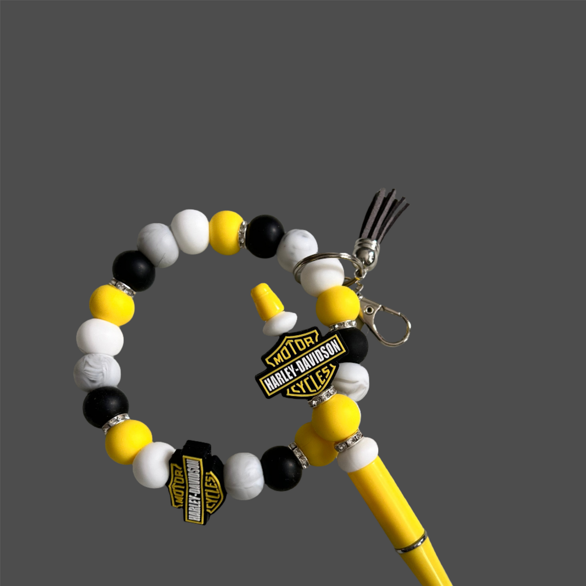 Grab this wristlet keyring and pen set today. Made with food safe silicone beads, you can rest assure that these will be safe if a child puts it in their mouth. This matching set is a great gift for any motorcycle enthusiast